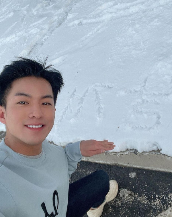 해당 사진 속에는 추운 날씨로 인해 바닥에 쌓인 눈을 배경으로 찍은 나태주가 보이며 캐주얼 한 패션으로 추워 보이지만 생기 있는 얼굴 표정과 넘치는 에너지가 확연히 보이는 모습이다.